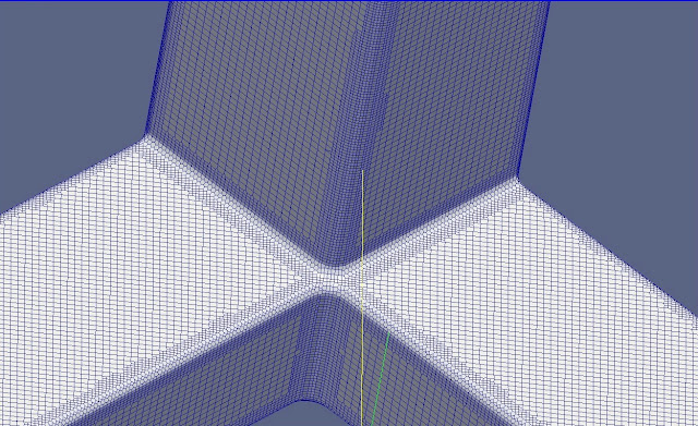 Let us now look at an example for a refined surface mesh but inadequate feature snapping. This feature can be controlled by parameters inside the 'surfaceFeatureExtractDict' file and the snapControl parameters inside the snappyHexMeshDict.